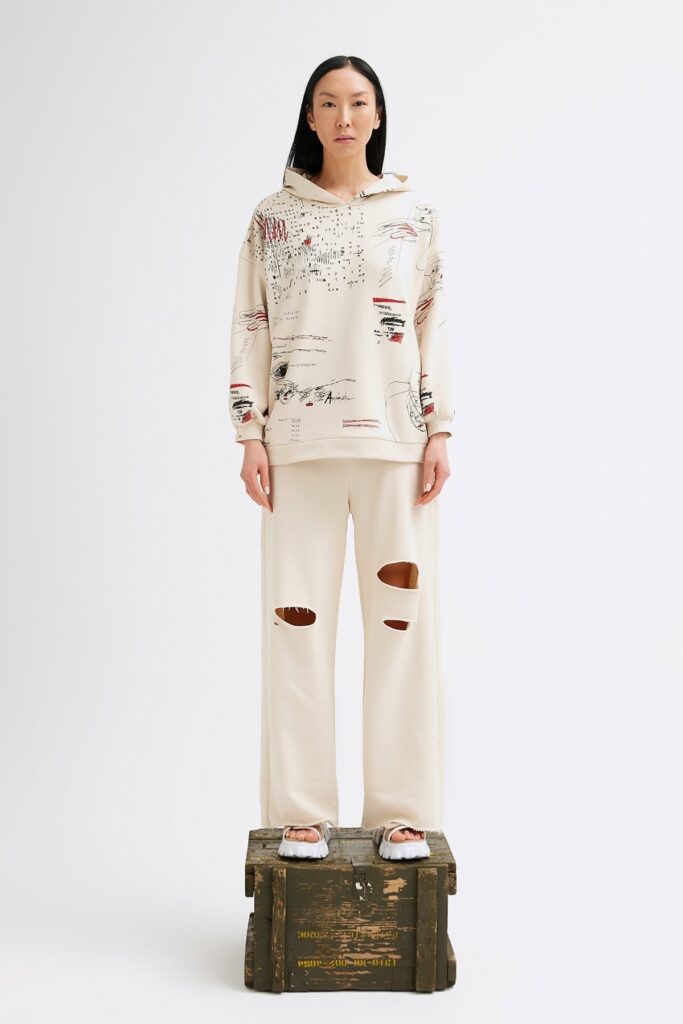 Eşofmanların vazgeçilmez parçası Kapüşonlu sweatshirtler. Hafif üzerine oturan ama salaş görünümlü sweatshirtleri ister eşofmanınızın iç kısmına sıkıştırarak ister üzerine salaş bırakarak, altına rahat yüksek taban bir ayakkabı ve sırt çantasıyla kombinleyebilirsiniz. Açık tonlar özellikle eşofman takımları da gri rengi çok kullananlar için bu geniş kapüşonlü sweatshirt takımlar öneri olacaktır.