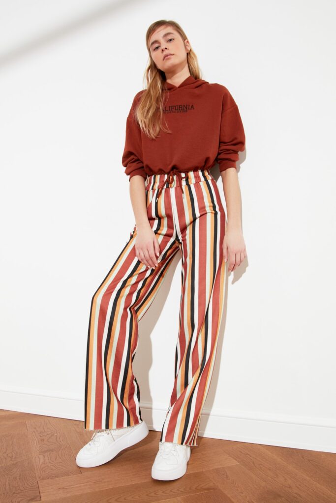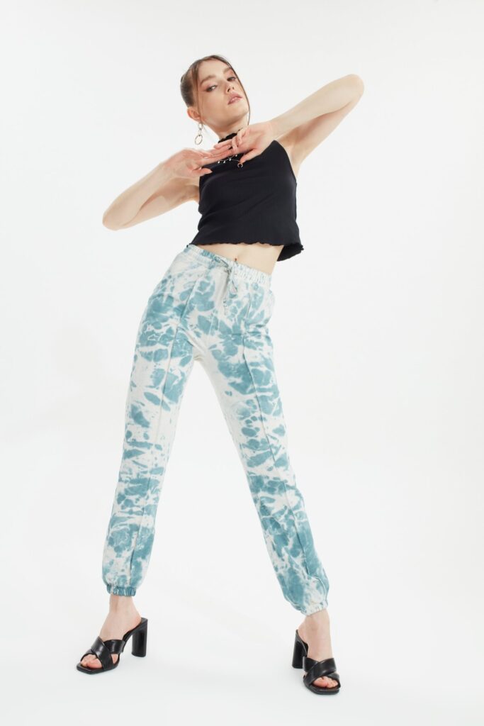 Etnik desenli eşofmanlarınızın altına ince topuklu ayakkabılar ve üstüne renkli bir büstiyerle şık bir görünüm else edebilirsiniz.