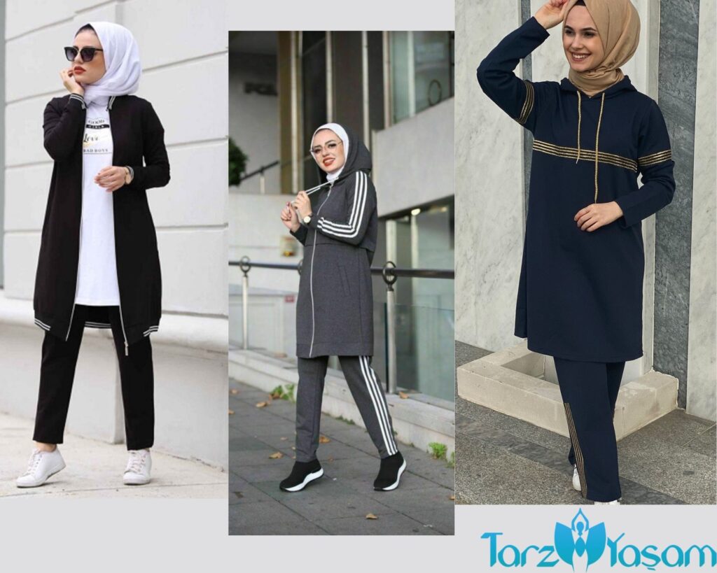 Eşofman takımlarınızı sporda veya evde kullanmanın dışında alternatif kombinlerle eşofman takımlarınızı alternatif kıyafetlerinizin arasına alabilirsiniz. Kapalılar için spor kıyafetleri de buna dahil.. Tesettürde günümüz kıyafetleri artık çok geniş yelpazede spor kombinlerde de önü fermuarlı tunik model eşofman üstü ile takım halinde veya yakın tonlardaki eşofman altı üzerine şişme yeleklerle kombinleyebilirsiniz.